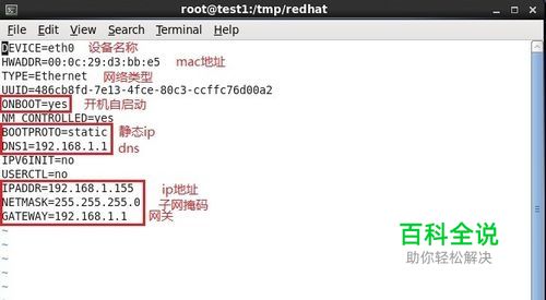 开始编辑,填写ip地址、子网掩码、网关、DNS等。其中“红框内的信息”是必须得有的。