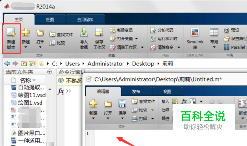 先打开软件后,找到左上角按钮,点击即可用m编辑器,写入代码,可以每写完一部分,执行一下,查看效果。