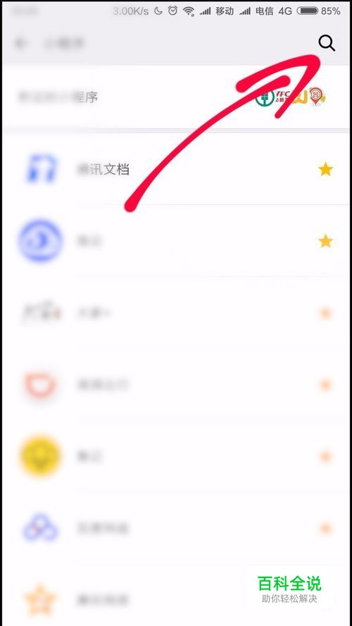 进入到小程序中之后,我们点击右上角的搜索图标,如下图所示。