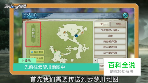 首先,传送到云梦川地图中,点击寻路到地图有鱼的地方。