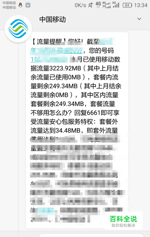 接着在我们发送之后,10086就会回复我们,我们就可以看到自己所用的流量了