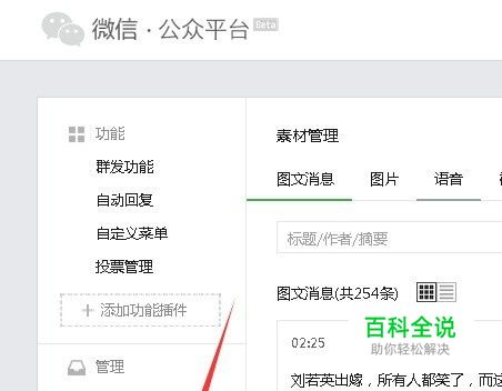 点击左侧菜单栏的素材管理,再点击右侧的 新建图文