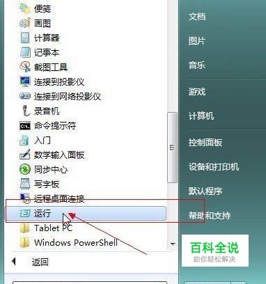 首先在Win7桌面左下角处点击开始——所有程序——附件——运行,然后再运行文本框输入cmd命令