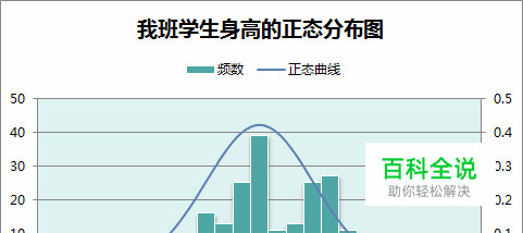 至此,图形已经画完。如果只需要柱形分布图,不需要正态曲线,在柱形图中选中正态曲线,按键盘上的Delete键删除就行了。 有的专业作图软件中,柱形分布图中柱子是紧挨在一起的。要这样设置的话请在柱形图中选中柱子,然后 [图表工具] 选项组切换到 [布局] 选项卡。点击 [设置所选内容格式],打开 [设置数据系列格式] 对话框。分类间距设为0%。切换到 [边框颜色] ,然后选择 [实线] ,颜色随便选一个,只要和柱子不是一个颜色就可以了。这里选择了黑色。