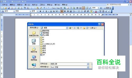 点击工具栏上的“保存”,随即弹出一个“另存为”对话框,从中选择你所要存储的位置,如图所示