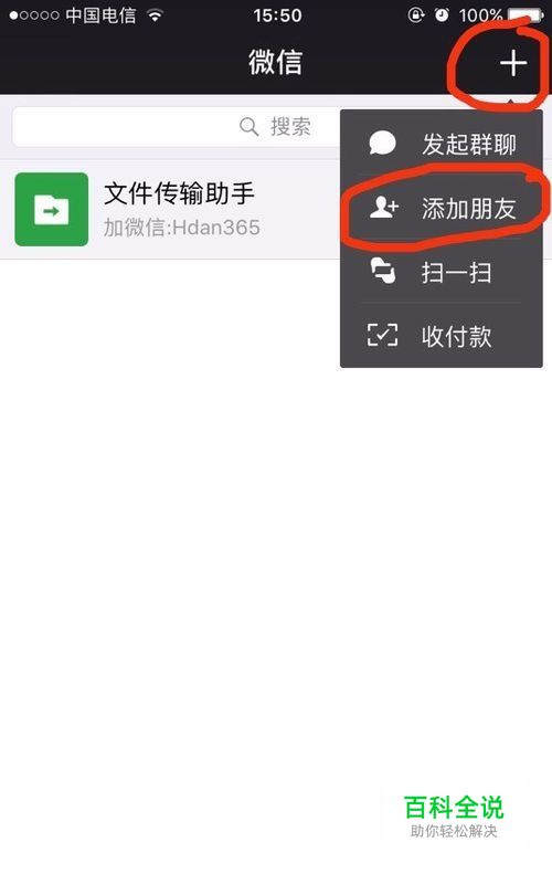 打开自己的微信,在微信的右上角点击+号,然后点击“添加朋友”。