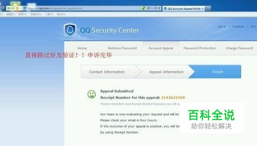 申诉第三步——完成申诉 此时完成申诉,没有好友验证申请步骤