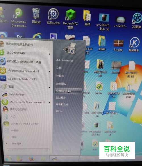 在电脑的左下角找到设备与打印机的选项,然后点击进入