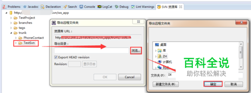 选择SVN资源库中的文件夹名,或者可以使用指定的模块名,这个是已经在服务器指定好的,finish完成。