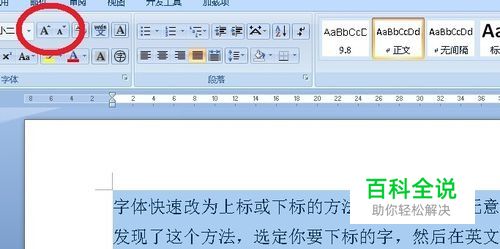 常规方法:选定文字后,点击下图中红色框出的两个按钮,一个是字体增大,一个是减小。 或直接在旁边选择字号。