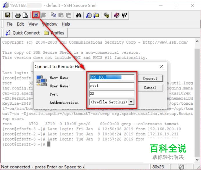 打开SSH远程连接工具,输入IP、账号、密码之后登录服务器。
