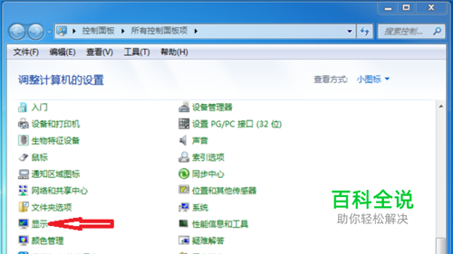 进入控制面板界面后下拉界面,找到并点击打开【显示】选项。