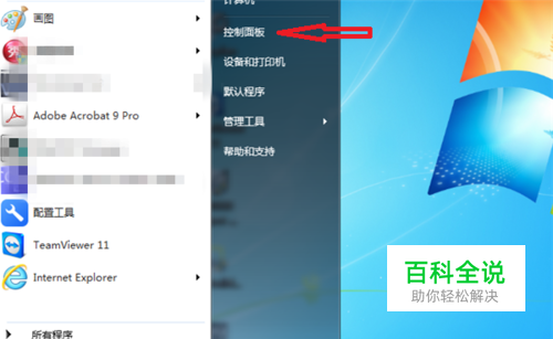 打开电脑,在电脑的左下角点击【开始】按钮,在上方点击打开【控制面板】。