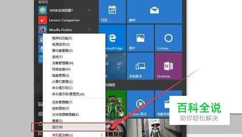 在win10电脑左下角的开始处,点击右键选择打开“运行”命令。