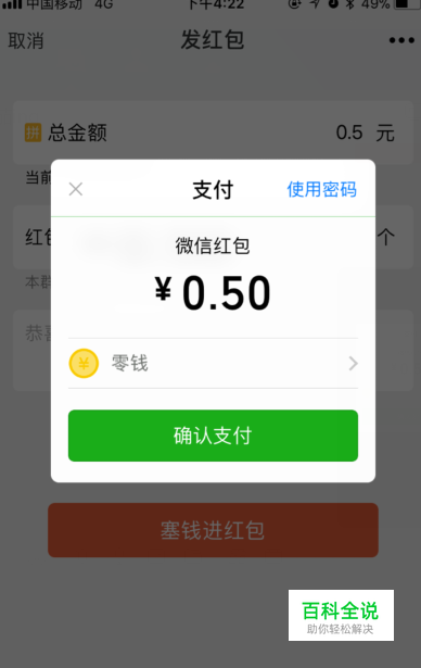 设置好之后我们回到聊天页面,点击发送红包,可以看到在发送的时候只要指纹输入,无需输入密码。