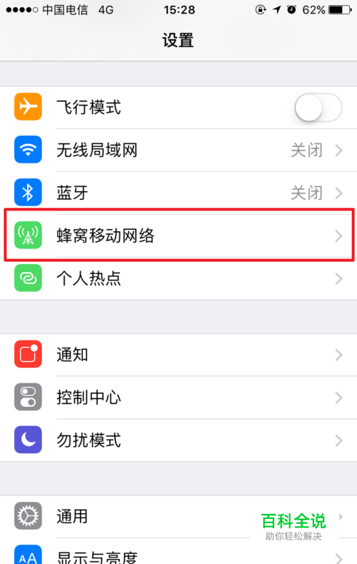 点击蜂窝移动网络数据选项。