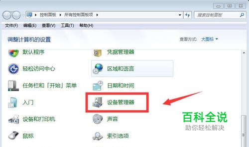 在电脑的“控制面板”上找到“设备管理”,点击它。