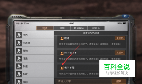 此时会弹出聊天界面页面,在该页面的【频道】这里玩家会看到此时其他玩家的发言,如果有想要加为好友的玩家,点击该玩家。