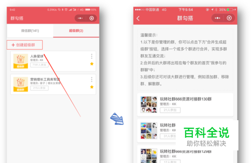 再点击群组中的【超级群】,选择【创建超级群】,就可以将你管理的多个微信群进行合并成超级大群了!我现在加入的超级大群中,有一个已经有7000多人了。