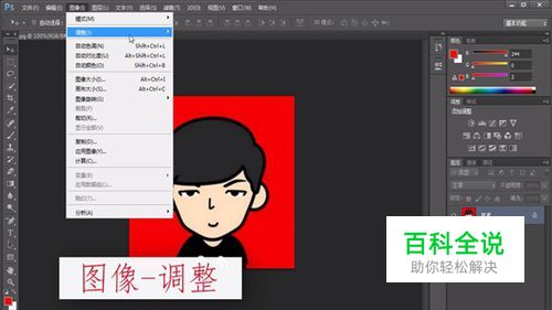 现在我们来张背景换成蓝色,我们左键单击菜单栏中的图像,然后点击调整。