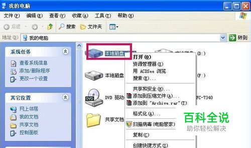 进入到我的电脑以后,在我的电脑里面右键点击本地磁盘C,然后在下拉菜单上面点击属性,如图: