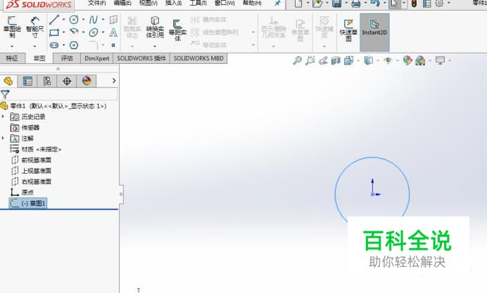 进入零件图后,选择一个基准面绘制一个圆的草图,点击退出草图;