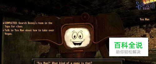 接着去找那个射了我们的家伙,坐电梯过几扇门后来到他的房间,在他房间里的是yes man,一个机器人,简称小Y...