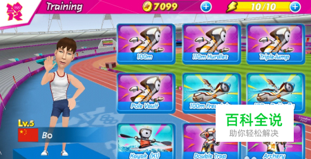 游戏中的第一项就是100米短跑了,100米短跑是奥运会项目田径赛中距离最短的比赛,也被誉为“挑战人类速度极限”的比赛。截止2009年为止,男子100米短跑的世界纪录为博尔特在2009年柏林田径锦标赛上创造的9秒58的纪录。