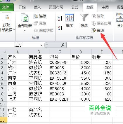 2010版excel:如何进行高级筛选