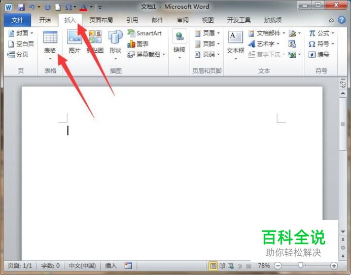首先,打开Word2010软件,点击插入选项卡,再点击表格功能。