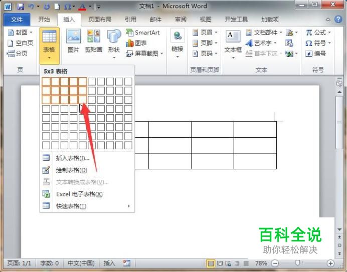 选择表格的行数和列数,松开鼠标后界面上就画出了一个表格。