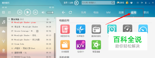 下载并安装酷狗音乐盒,打开找到应用界面,如图: