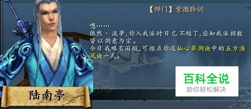 完成后,继续考察,考察内容基本为弈剑门派的历史和现有技能之类比较简单