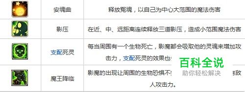 刀塔传奇影魔技能: 安魂曲:释放冤魂,以自己为中心大范围魔法伤害; 影压:在近、中、远距离连续释放三道影压,造成小范围魔法伤害 支配死灵:每当周围有一个生物死亡,影魔都会吸取他的灵魂来增加攻击力,支配死灵的效果也会令影压伤害增强。 魔王降临:影魔的出现让周围的生物恐惧不安,大幅度降低场上所有敌人攻击力。 刀塔传奇影魔加点推荐: 安魂曲>支配死灵>影压>魔王降临 前期:安魂曲(4)>支配死灵(3)>影压(3) 后期:影压(8)>安魂曲(2)