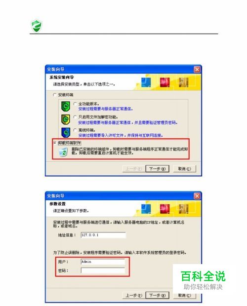 从终端电脑上卸载 把绿盾终端安装程序“绿盾终端 .exe”拷贝到要卸载终端的电脑上,运行, 选择“卸载终端软件”选项,点击“下一步” 输入系统管理员的密码,默认是没有密码,点击“下一步”弹出 系统提示