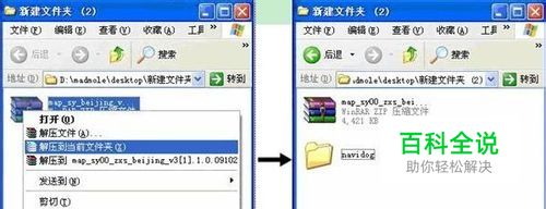选中从网上下载的地图数据压缩包,右击鼠标后选择“解压到当前文件夹”即可以进行解压缩操作 map_sy00_zxs_beijing_v3.6.0_100906f.zip