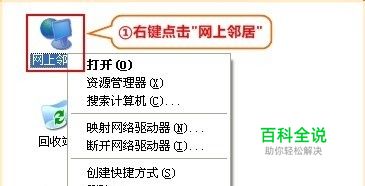 第一步:右键点击桌面上的“网上邻居”,选择“属性”