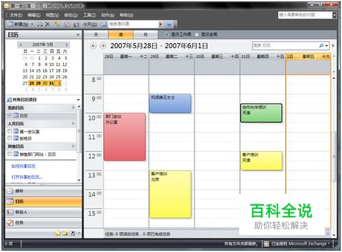 打开Microsoft Office Outlook 2007,在左侧的导航窗格中单击【日历】按钮,切换到日历视图,此时你将看到自己的日程安排信息