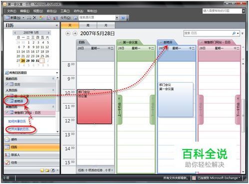 而单击每一份日历视图标题左侧的箭头,又可以重叠的方式汇总日程安排状况,切实并准确地找到所有适合的时间点通过将各种日历放在一起翻动并进行颜色编码可以对比日程安排和寻找同组成员,用户可以在日历之间拖动约会或者把约会拖到他们自己的日历上。如果在企业中部署了Windows SharePoint Services或Microsoft Office SharePoint Server 2007服务器产品,那么团队成员还可以将团队站点中的日程安排显示在自己的Outlook日历视图中