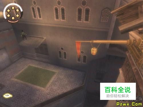 左墙飞檐反跳+E两次后到平台,扒墙边沿,按住E拉出身后的石柱,跳上,飞墙到梯子,下滑,再拉身后的石柱,迅速上去飞墙反跳到对面的水池里(哥们这里速度点,小心不要流血过多而死)