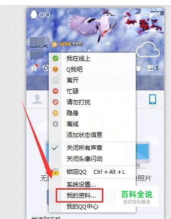 点击后会出现一个下拉列表,这时可以点击里面的“我的资料”按钮,点击它进入QQ资料设置页面中。