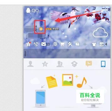 打开并登陆QQ帐号后,在QQ昵称右侧会看到有一个按钮,可以用鼠标左键点击它。