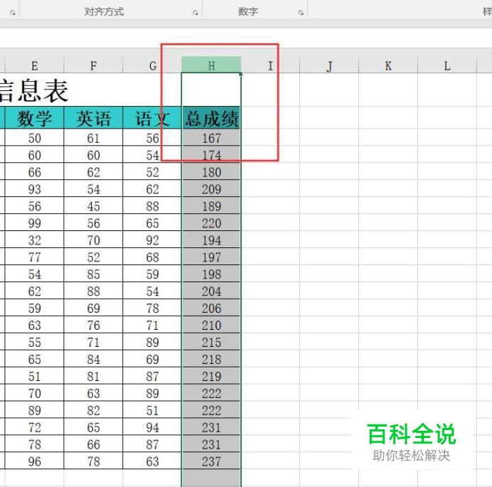 打开Excel文件,选中学生成绩那一列。