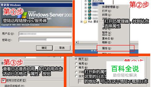 第一步骤:登陆vps/服务器,打开iis管理器,选择站点属性,查看日志文件存放位置