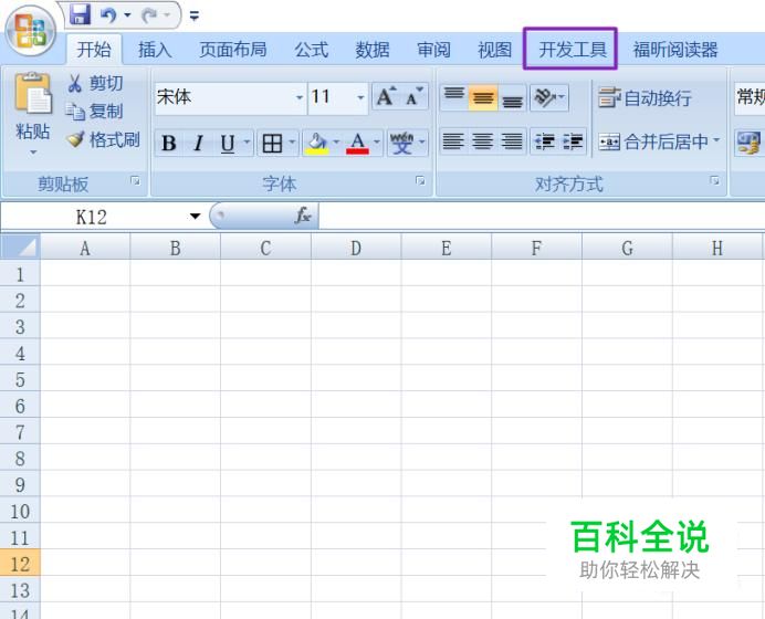 首先,我们点击打开电脑上面的excel,然后点击工具栏中的开发工具;