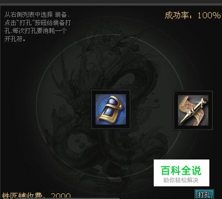 装备开孔: 玩家们只要选到要开孔的目标装备,然后可以到“商店”出买到开孔道具“初级开孔符”和“中级开孔符”,便可以化为一些铜钱来给装备打孔了。一件装备最多可以打六个孔,开始的二个孔的成功率为100%,之后的每两个孔成功的几率会逐级降低,分别为50%和25%,而且依靠的“开孔符”等级也会升高,费用增加,具体数据可以在界面的左边显示。