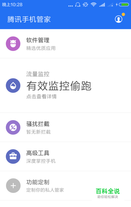手机流量的问题,我们可以借助腾讯管家来进行监控。安装这个手机程序,打开首页,找到流量监控即可。