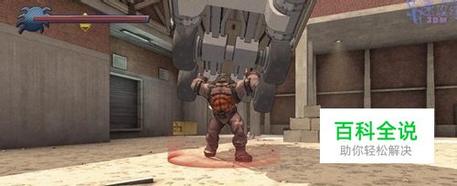 倒了楼底部后继续BOSS战,等BOSS消失的时候我们要离中间远点,BOSS会在中间落下, 向四周发射震荡波,跳着躲开。还要小心BOSS的冲撞和单方向的冲击波,它扔石块的时候比较好躲,躲开立刻按B飞踢。