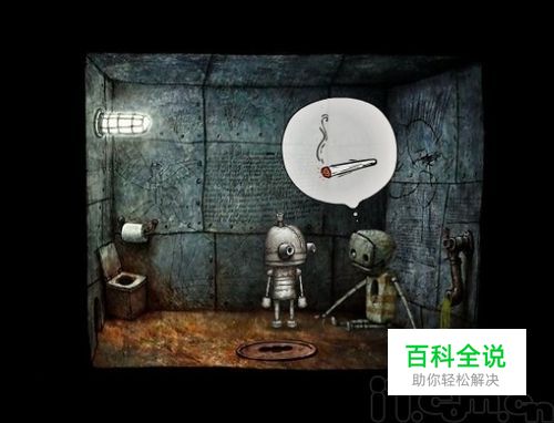 然后走到左边的老鼠洞处,缩短后拿开始得到的手去勾一个东西,旁边房里两个机器人胆子特小,很搞笑的说。一直会伸到最左边的牢房。抓住了柜子后,使劲晃,拖把就掉下来了。拿回来自己用,把手还给抽烟的小机器人后再将拖把组合起来,打开了下水道的盖子,一直往右边走,会看见最右边有一个下水道的盖子,过去后,此关通过。