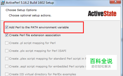 下载安装 Activeperl应用程序,这里注意5.16版本以上的版本在安装过程中会自动添加到电脑的path环境变量中